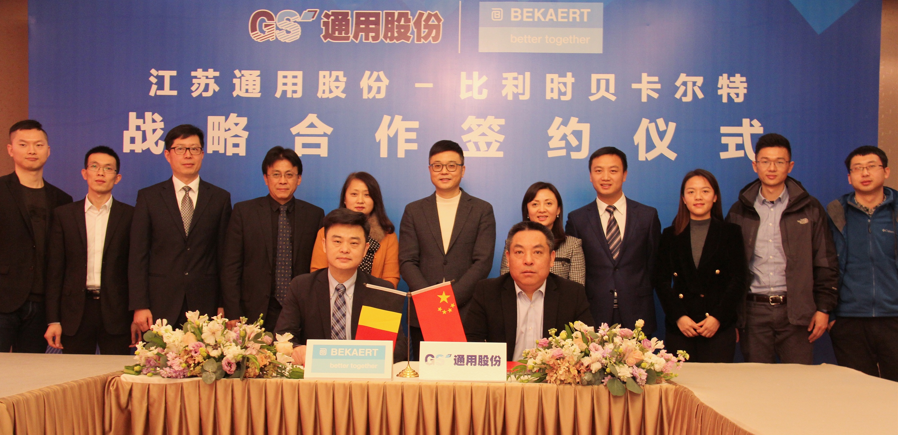 1月21日,通用股份與比利時貝卡爾特鋼簾線簽署深化戰(zhàn)略合作協(xié)議。通用股份董事長顧萃、常務(wù)副總經(jīng)理程金元,貝卡爾特北亞區(qū)商務(wù)總經(jīng)理王穗生等領(lǐng)導(dǎo)共同見證此次簽約。