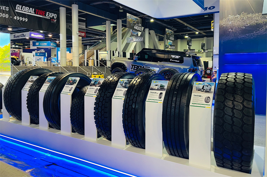 在商用車領域,通用股份同樣展現了深刻的市場洞察。針對北美復雜的物流環(huán)境,千里馬(CELIMO)的中長途系列CTL20、CAL20、CLD01,以及喜達通(TBBTIRES)的THA20、THD22、HD1等多款產品,為高效運輸提供了堅實保障。其中,為混合路況拖車輪位設計的TMT50輪胎,憑借其先進的抗刺扎和抗切割配方,將耐久性提升至全新高度;而專為中長途運輸設計的全輪位輪胎CAL20,則以其全能表現和低碳高效,成為貫穿全場的明星產品之一,彰顯了通用股份在商用車輪胎領域的專業(yè)深度。