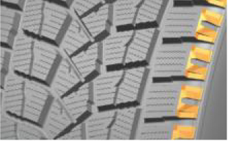 能夠?qū)⑺で懈铋_(kāi),抑制打滑現(xiàn)象,提升輪胎在冰雪路面的牽引、制動(dòng)性能。引力,保障彎道行駛時(shí)候的穩(wěn)定性。