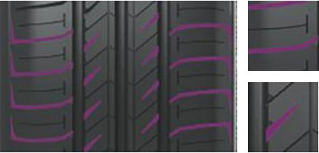不等節(jié)距的對(duì)稱(chēng)花紋塊布局,有效降低胎面與路面共振,減小噪音。